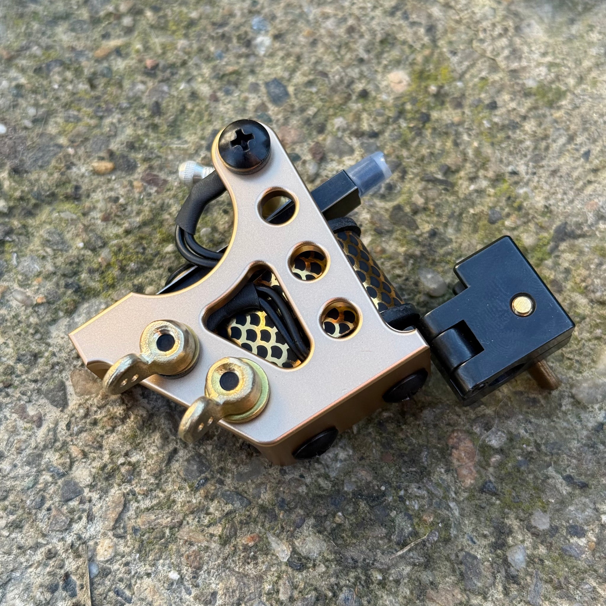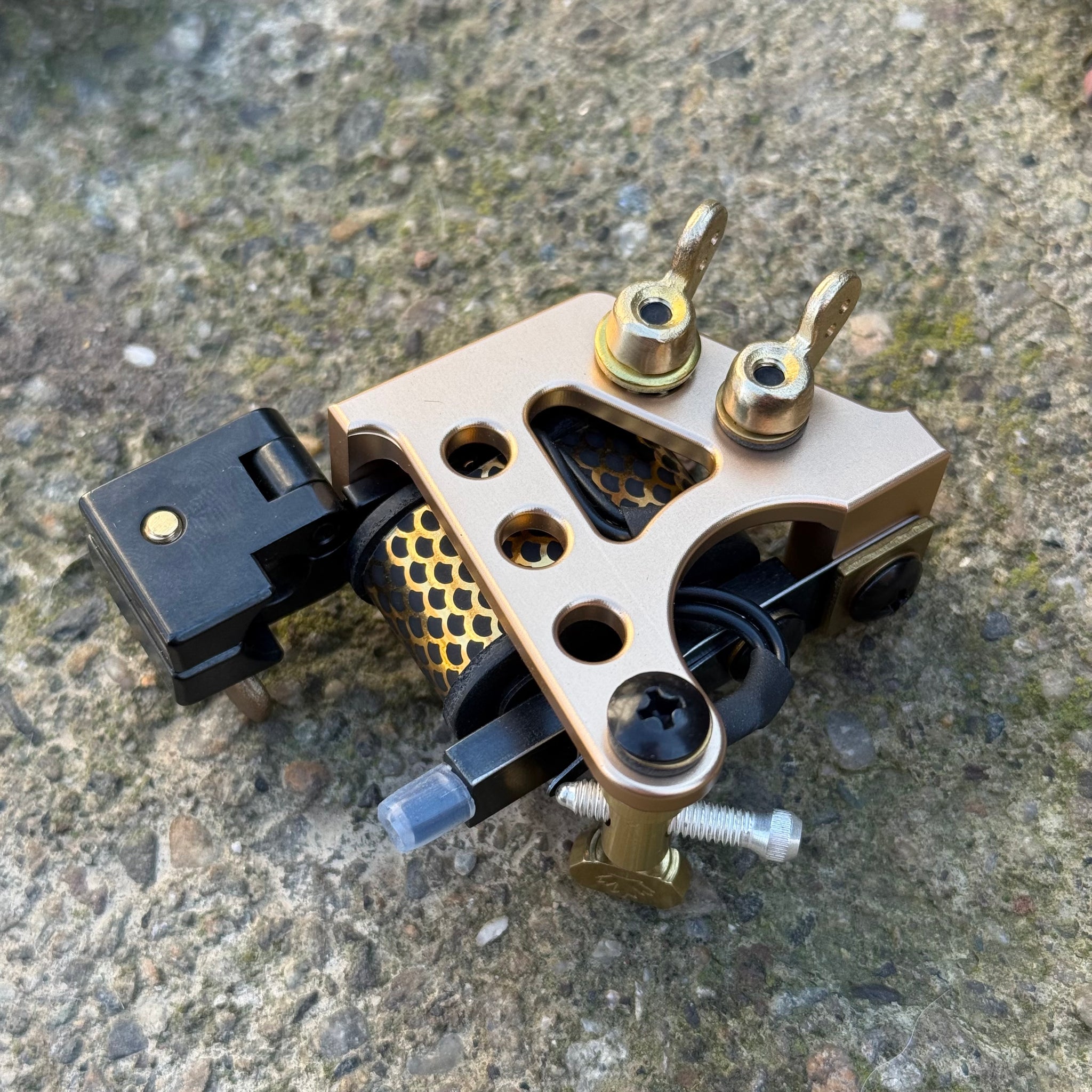 The “Gavel” iron vice / yoke combo from JR1 Machines is spring loaded for easy loading and will grab any tube effortlessly. Additionally, it balances the weight of the machine over the tube making lining easy and comfortable.