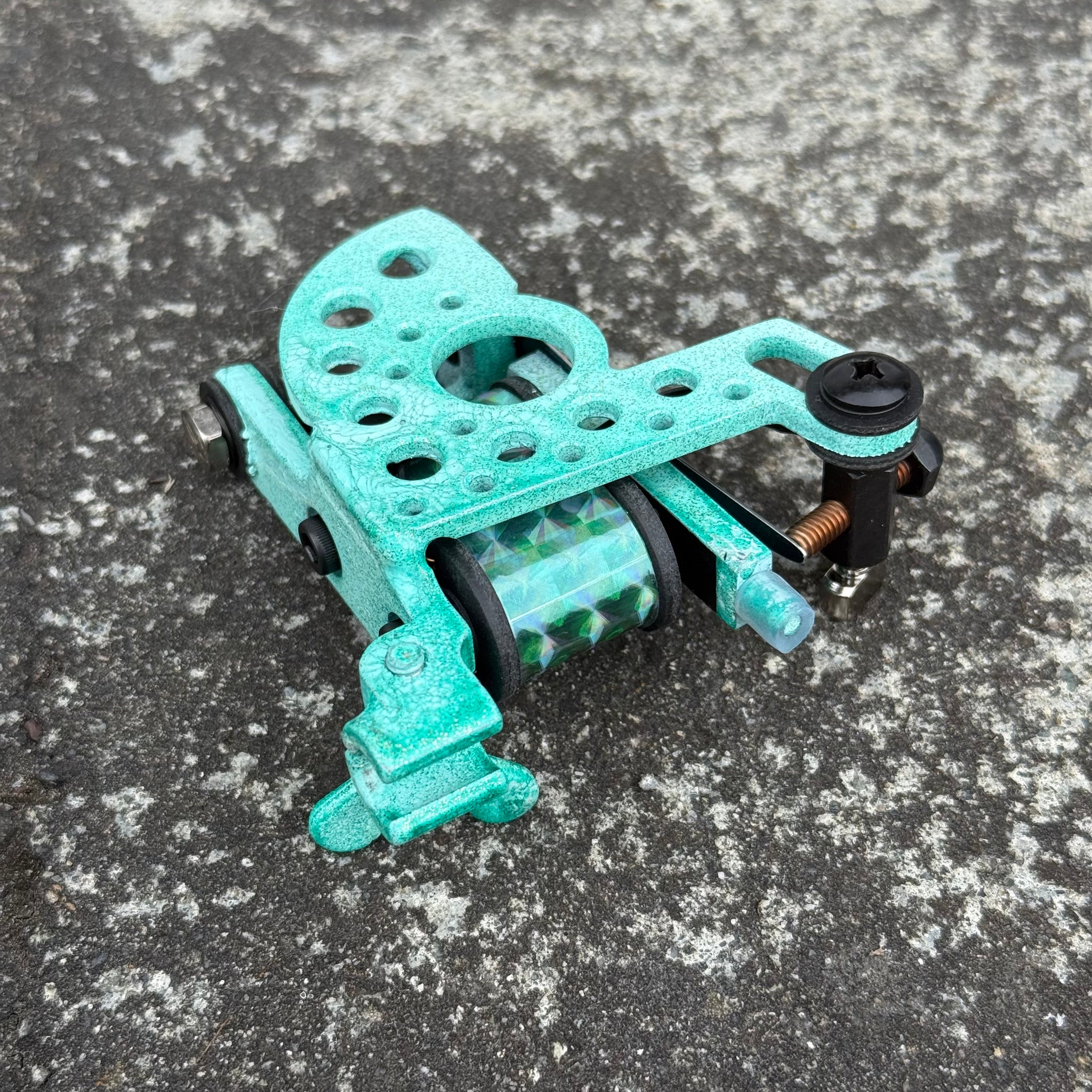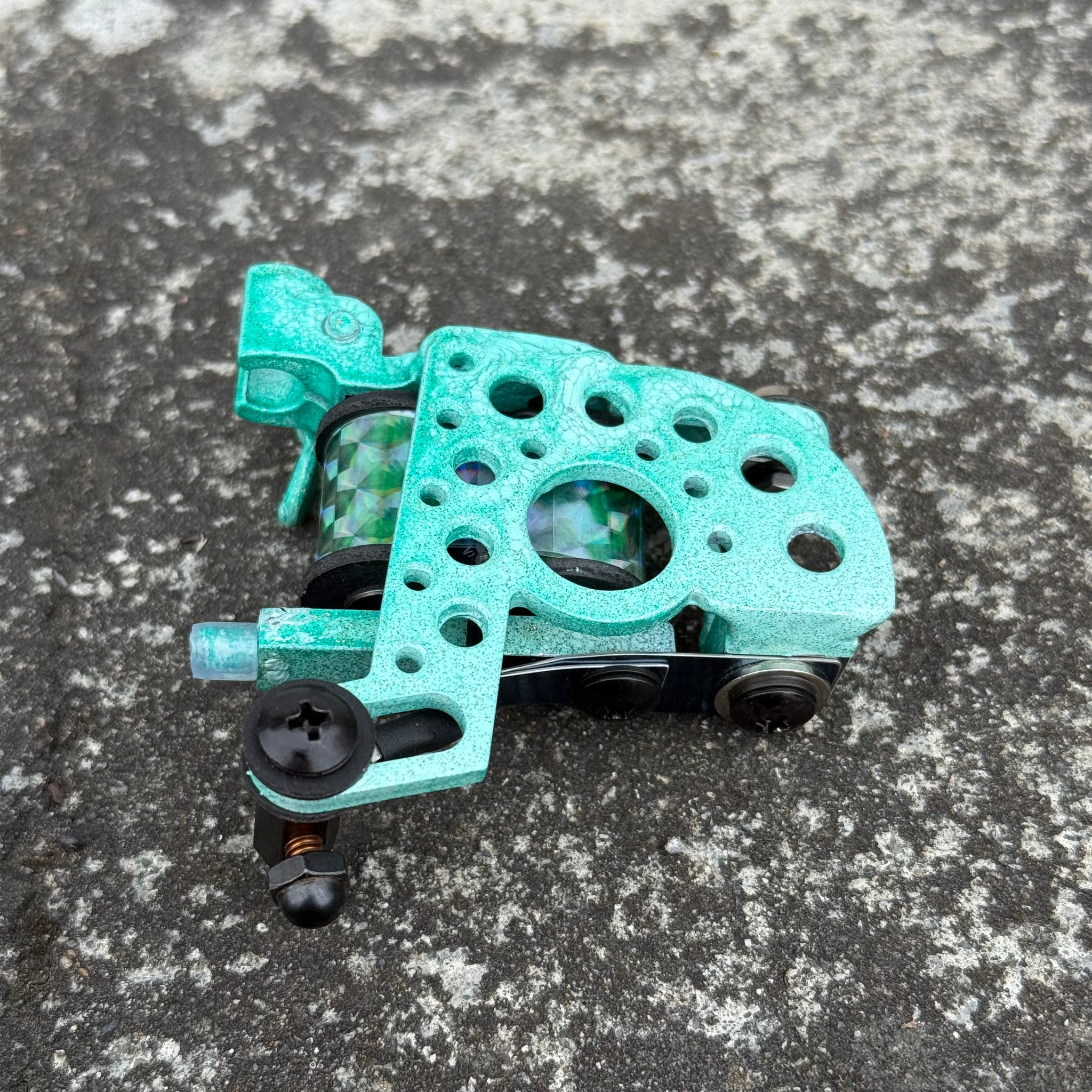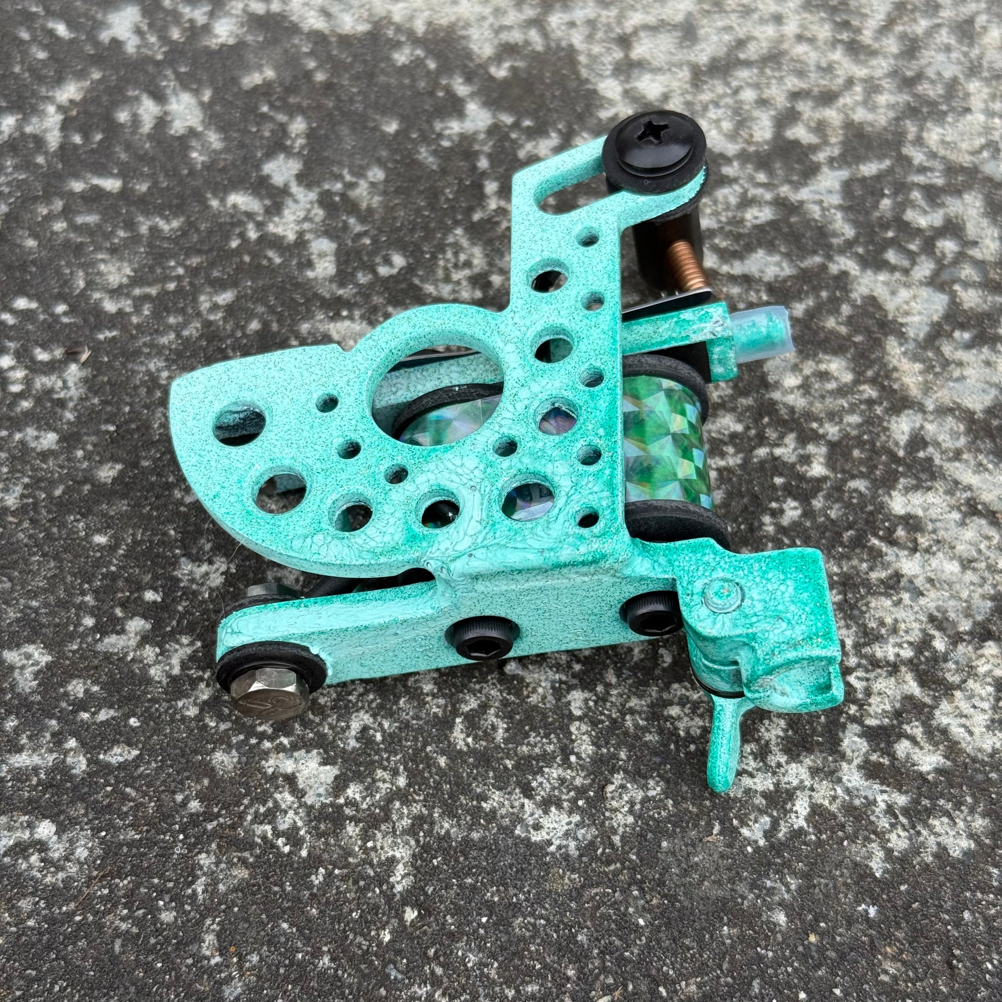 I build my machines to complement exactly how I tattoo. Single pass color with no fuss and easy shading. This machine will run best with standard 7 to 15 mag groupings.